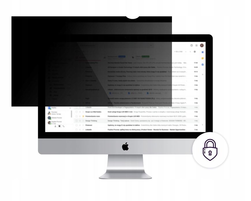 Filtry prywatyzujące zapewniają wyższy komfort pracy w miejscach publicznych, a także pomagają zabezpieczyć poufność danych takich jak: dane logowania, informacje finansowe oraz inne informacje, które wymagają szczególnej ochrony.