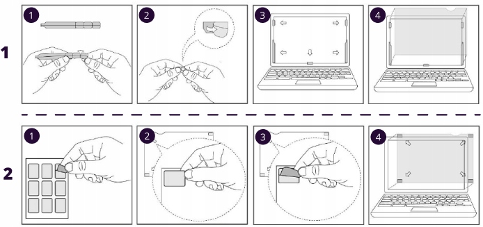 - przyklej je blisko rogów filtra prywatyzującego