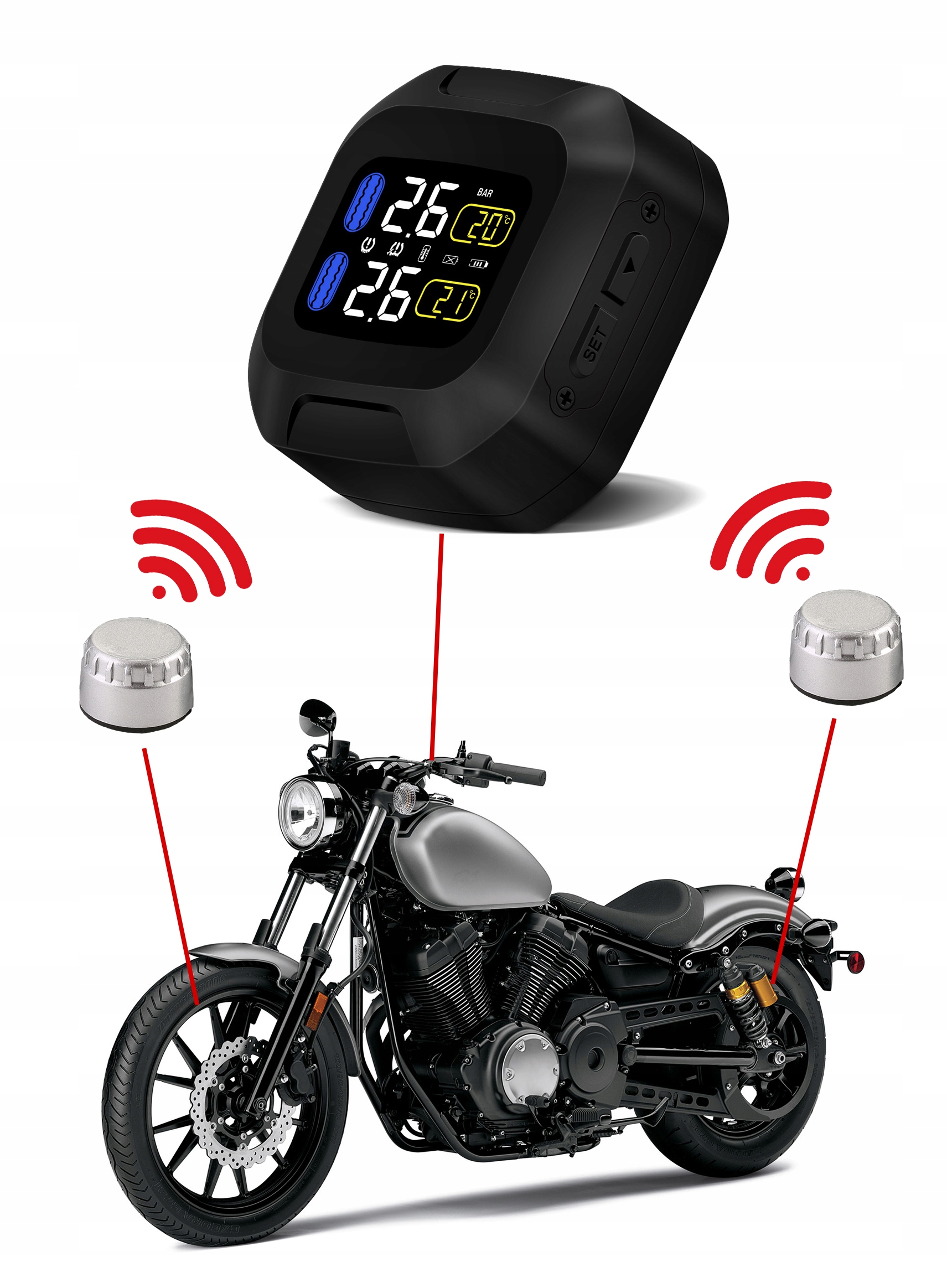 Idealny zestaw do zdalnego pomiaru temperatury i ciśnienia w kołach motocykli.