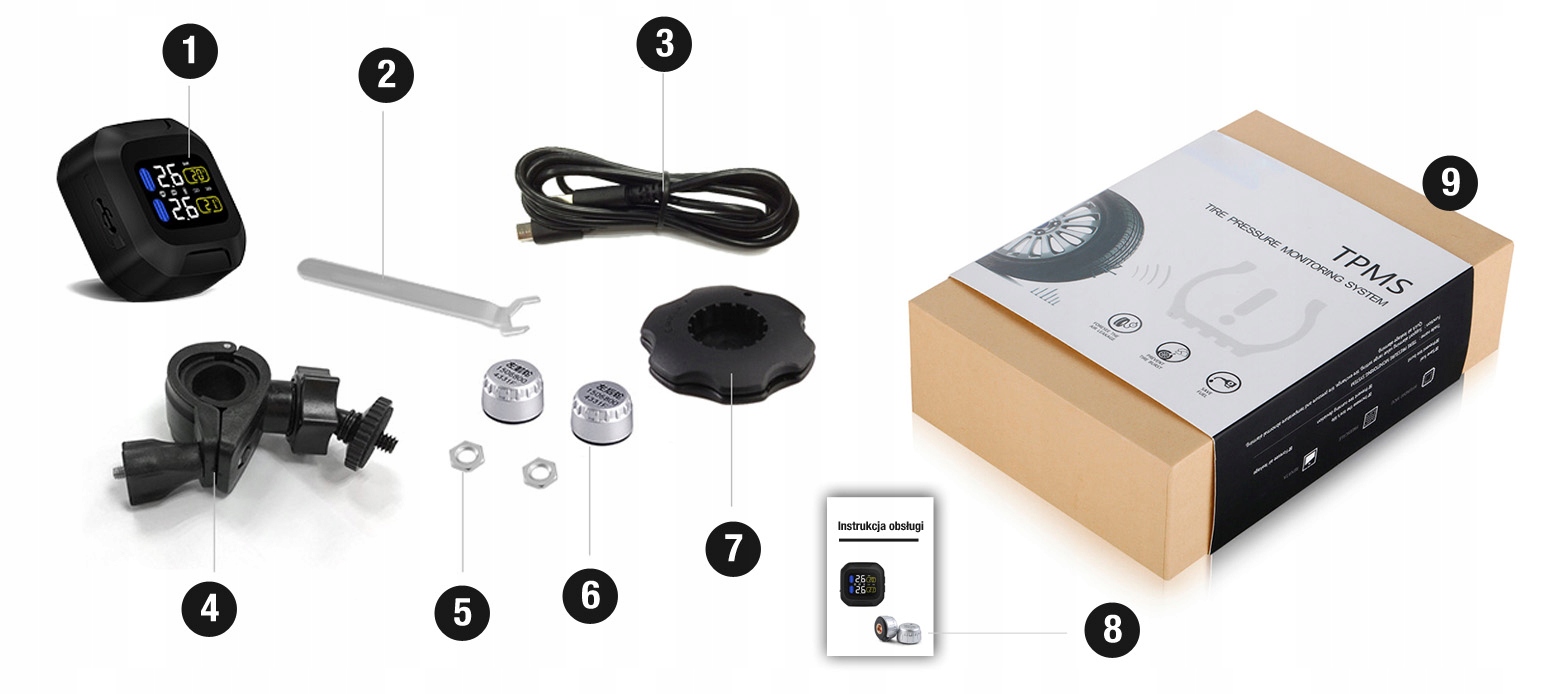 - Zawiera 2 zewnętrzne czujniki do kół z bateriami