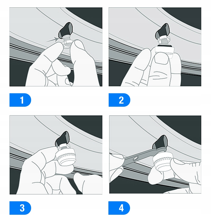- Po zdjęciu nakrętek na wentyle nakręć antykradzieżową nakrętkę
