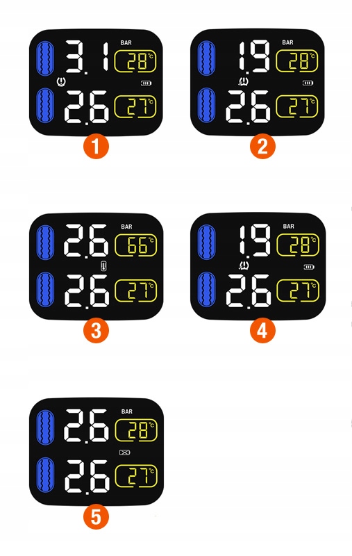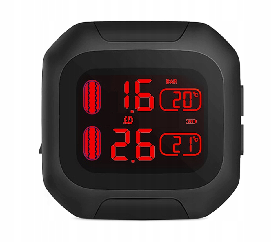 Nie martw się o wyciek powietrza / zbyt duże ciśnienie lub zbyt dużą temperaturę w oponach. Gdyby cokolwiek takiego się stało wyświetlacz zacznie podświetlać się i migać na kolor czerwony, urządzenie zacznie wydawać również sygnały dźwiękowe informujące o problemie.